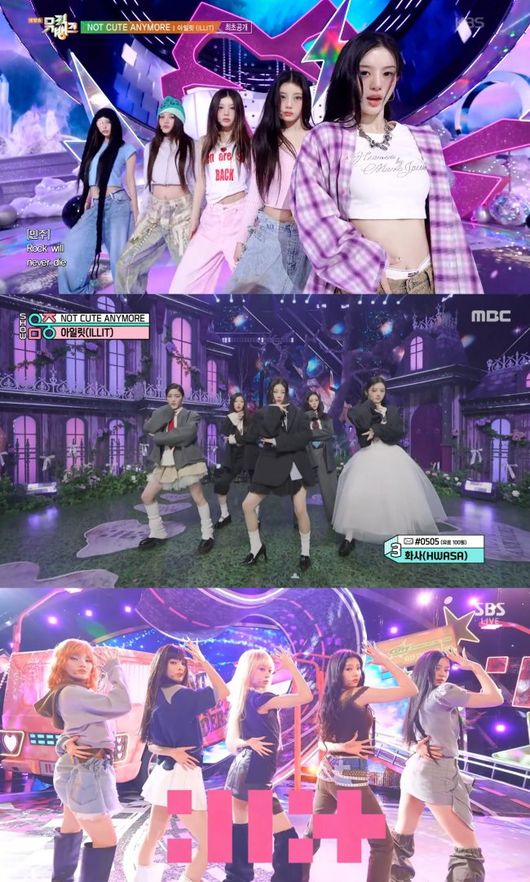아일릿(윤아, 민주, 모카, 원희, 이로하)은 지난달 28일 KBS2 ‘뮤직뱅크’를 시작으로 29일  MBC ‘쇼! 음악중심’, 30일 SBS ‘인기가요’에서 싱글 1집 ‘NOT CUTE ANYMORE’와 동명의 타이틀곡 무대를 꾸몄다.