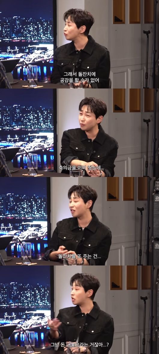 딘딘은 “나는 아이가 없다. 그래서 돌잔치에 공감할 수 없다”라고 자신의 생각을 드러낸 후 “축의금을 이미 줬는데 돌잔치를 또 주는 건.. 나는 돌잔치를 안 할 것 같다”라고 단호하게 말했다.