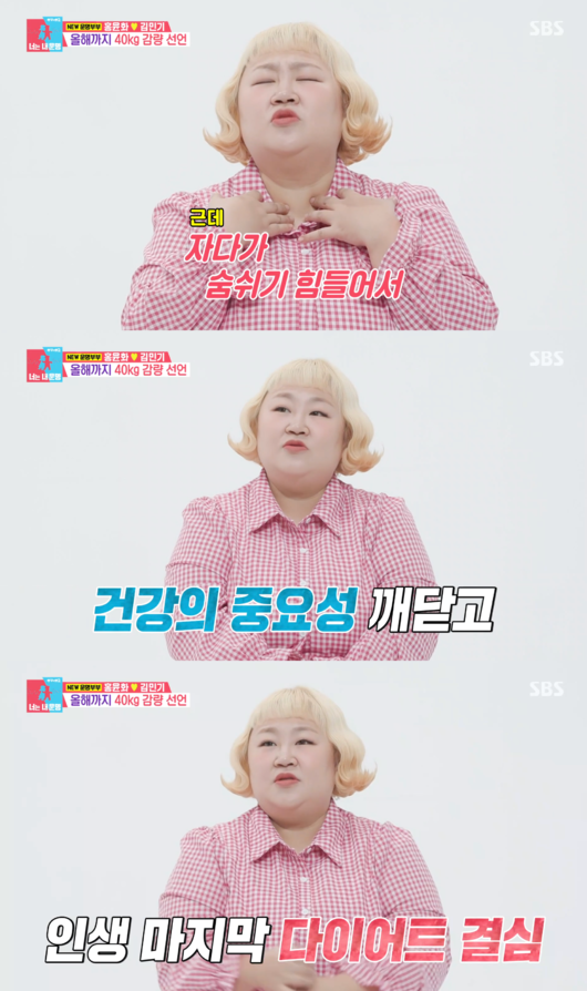 홍윤화는 “자다가 숨쉬기가 힘들어서 일어날 정도다. 정신적으로 피폐해지고 몸도 아프니까 마음이 우울하고 힘들더라. 체중감량이 우선인 것 같아서 40kg을 빼려고 한다”고 밝혔다.