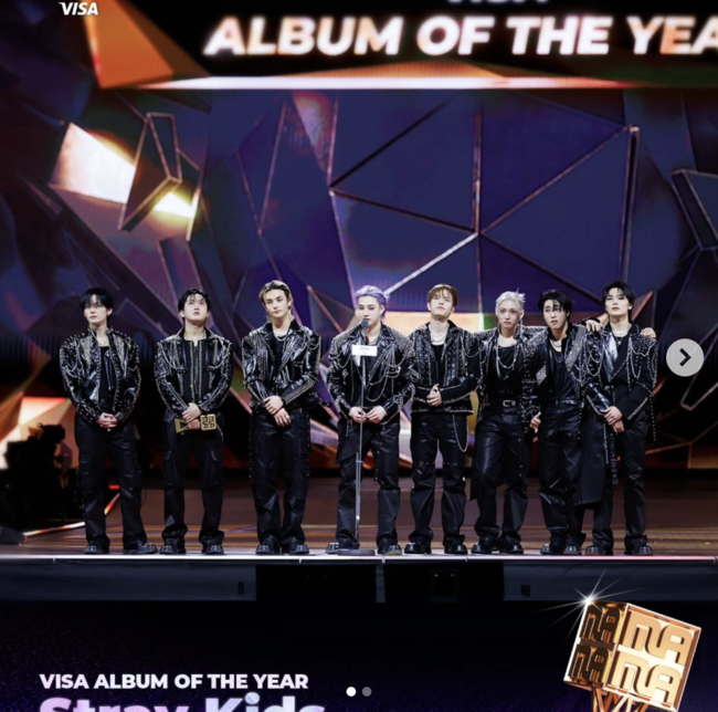 또한 스트레이 키즈는 지난 29일 홍콩 카이탁 스타디움에서 개최된 '2025 마마 어워즈'에서 4개 대상 중 하나인 앨범 오브 더 이어(ALBUM OF THE YEAR) 주인공으로 호명됐다. 또한 팬들의 투표로 수상자를 가리는 팬스 초이스 메일 톱 10(FANS' CHOICE MALE TOP 10)까지 2개 부문 트로피를 들어올렸다.