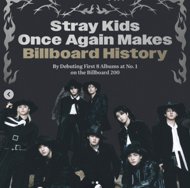 이는 전주까지 7주 연속 1위를 이어오고 있던 월드스타 테일러 스위프트의 독주를 깬 성적으로 현지에서도 주목받고 있다. 이로 인해 스트레이 키즈는 1956년부터 집계를 시작한 이 차트에서 8개 앨범을 연속으로 1위 자리에 직행시킨 세계 첫 아티스트가 됐다.
