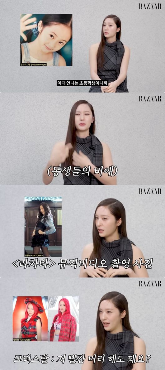 크리스탈은 먼저 5~6살 때 사진을 보면서 “어렸을 적 사진들을 보면 엄마가 다 예쁘게 입혔더라. 엄마 20~30년 된 옷도 아직도 내가 입고 그런다. 언니와 트윈룩 꽤 입긴 했다. 거의 언니의 옷을 물려 입었다. 동생들이 그렇다”라고 밝혔다.