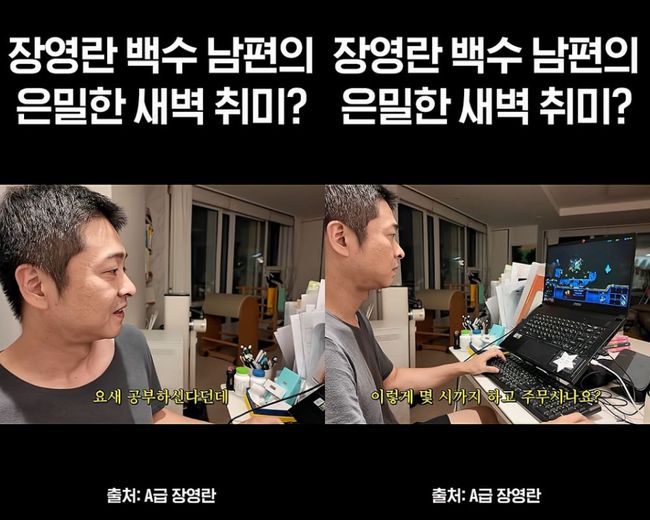 방송인 장영란이 백수 생활을 만끽 중인 남편 한창의 새벽 취미를 공개했다.
