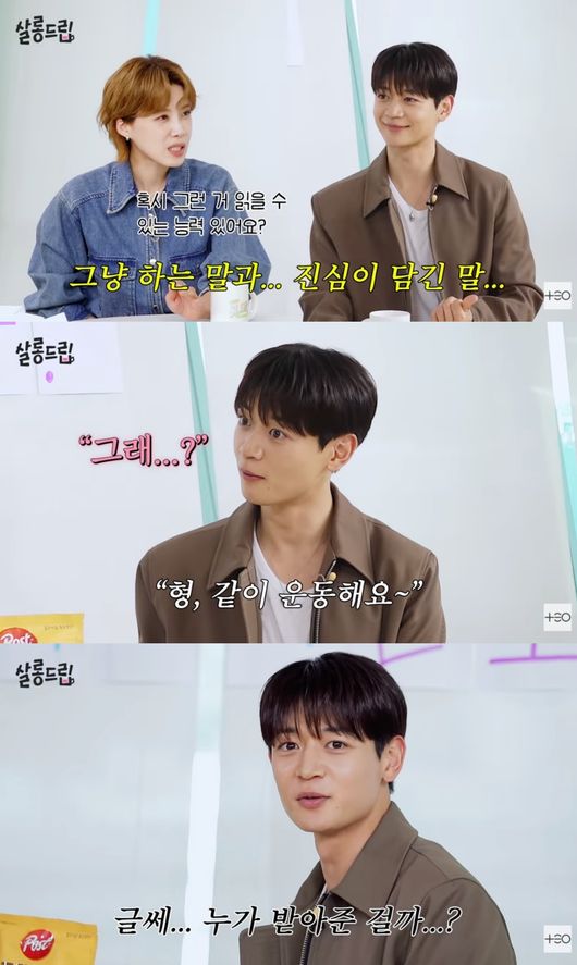 이에 장도연은 "혹시 그런 능력 있나. 그냥 하는 말과 진심인 말 구분하는 거"라고 말하자, 민호는 "솔직히 운동 쪽은 없다"라며 멋쩍어 했다. 그는 "'식사 한 번 해요'는 알아도, '형 같이 운동해요'는 '그래?'라며 보게 된다. 무조건, 콜이다"라고 답해 웃음을 자아냈다.