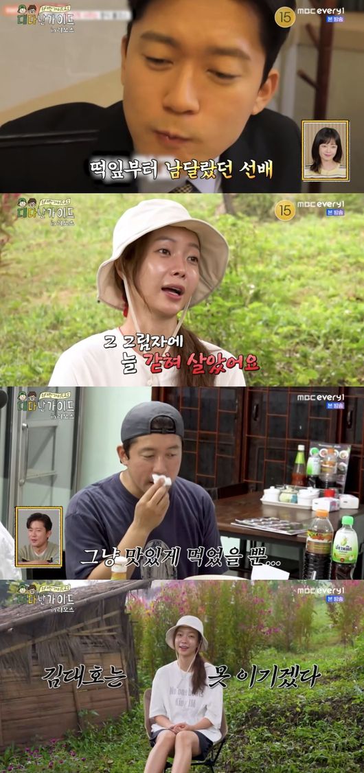 김대호를 따라나선 박지민은 “너무 매운데”라며 맛있게 먹는 김대호를 향해 “선배님 이렇게 해야 되는군요”라며 감탄했다. 이에 김대호는 “그냥 맛있게 먹으면 된다”라고 조언했다.