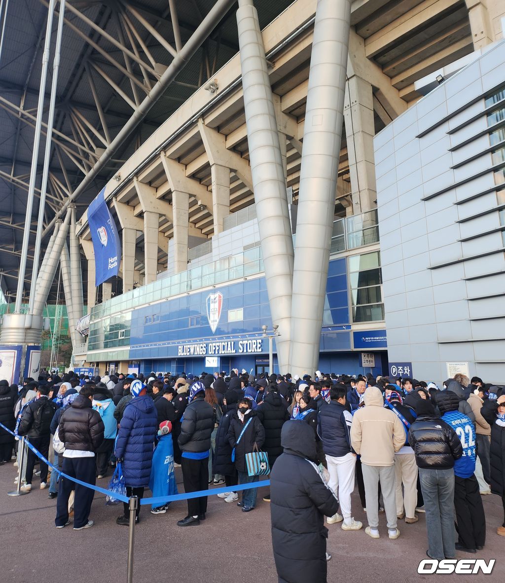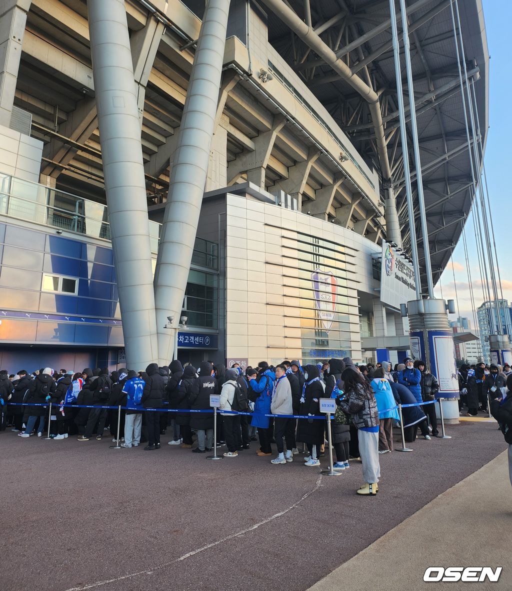 그럼에도 수원 팬들은 뜨거운 응원을 보낼 준비를 마쳤다. 킥오프 2시간여를 앞둔 시점부터 경기장 근처에는 수원 팬들의 행렬이 가득했다. MD를 판매하는 블루 포인트 매장 앞에는 수많은 팬들이 줄을 서서 기다리기도 했다. 재입고되는 머플러 등을 구매하기 위해 이른바 '오픈런'을 뛴 것.