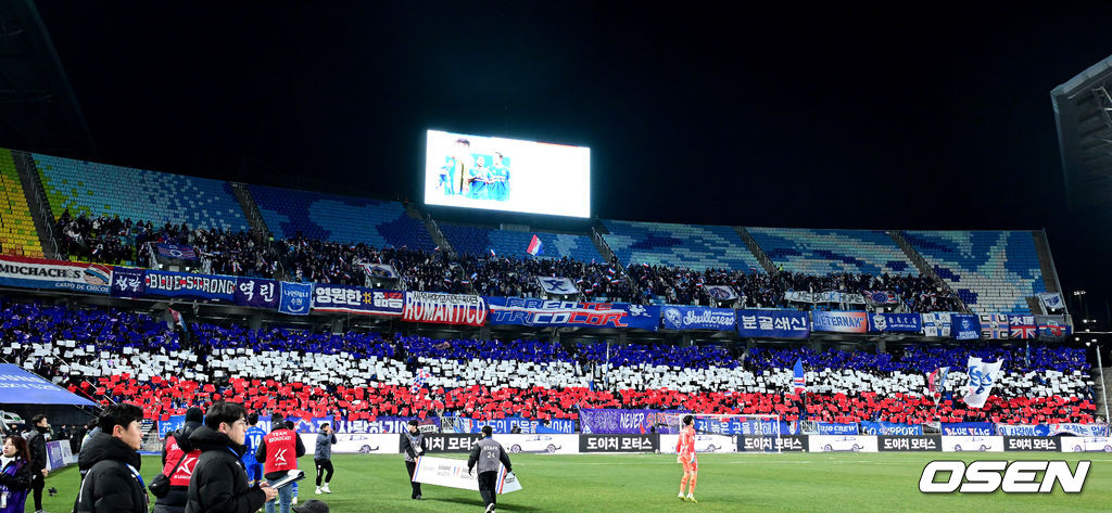 경기를 앞두고 수원 홈 팬들이 응원을 펼치고 있다. 2025.12.03 / dreamer@osen.co.kr