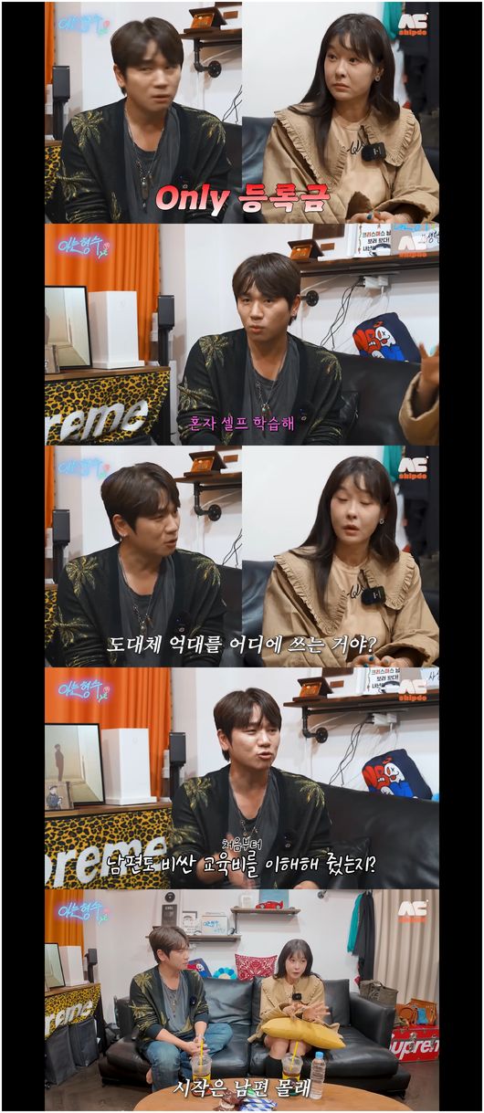 케이윌은 “교육비 지출을 남편이 이해해줬냐”라며 물었다. 교육관이 일치한지 궁금했던 것. 현영은 “남편 몰래 시작했다. 알면 뭐라할 거다. 통장을 따로 쓴다. 버는 게 다르다”라면서 “교육비는 같이 부담한다. 공동 통장, 개별 통장이 다르다. 공동은 등록금을 쓰고, 학원 같은 건 개별로 쓴다. 알아서 제가 할 수 있는 한 내가 한다”라며 등록금만 함께 부담한다고 말했다. 케이윌은 “억 대를 도대체 어디에 쓰는 거냐”라며 놀랐고, 현영은 “오로지 등록금만 억 대다”라고 말했다.