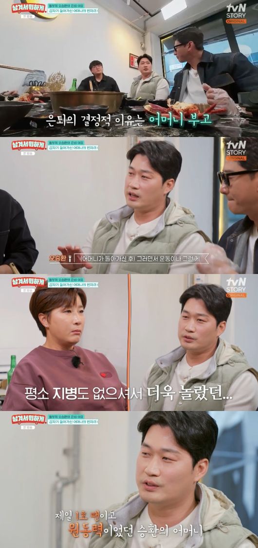 방송 기준 두 달 전, 선수생활 20년을 마무리하고 은퇴를 한 오승환은 “지금 이렇게 생각한 게 어머니 돌아가신 게 컸다. 어머니 돌아가신 후 운동이나 일이 제 루틴대로 돌아가지 못했다”고 은퇴를 결심하게 된 이유를 털어놨다.