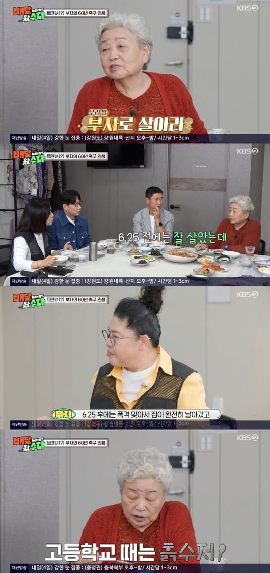 이날 강부자는 축구를 좋아하게 된 계기로 “그때 방송국에 3개국 축구 대항이 있었다. 그래서 우리 남편이 TBC 미드필더 선수였다. 선수들 먹을 밥을 집에서 싸서 운동장 가지고 나갔다. 그때부터 내가 축구를 좋아하게 됐다”라고 밝혔다.