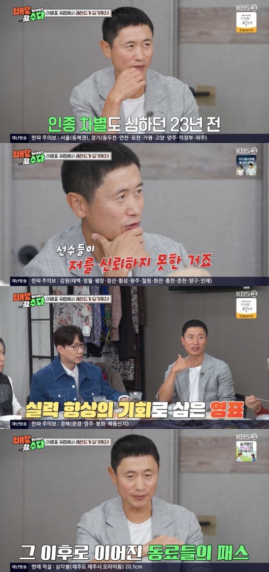 오히려 이영표는 선수들의 따가운 시선을 받고 더 자극이 됐다고. 그는 “저를 긴장하게 만들고 제가 엄청나게 집중력 있게 해서 실력을 향상하는 기회가 됐다. 몇 달 동안 두세 달 그러다가 네덜란드에서 라이벌 강팀과 대결을 했다”라고 이야기했다.
