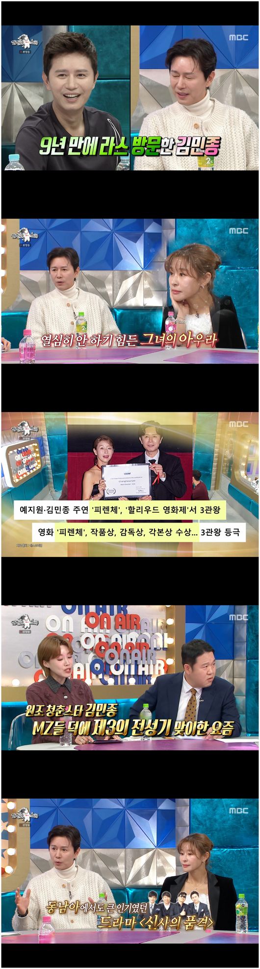 한편 김민종은 영화 출연에 대한 기억을 떠올렸다. 김민종은 “윤제균 감독이 ‘낭만자객’ 빼고 다 잘 됐는데 내가 ‘낭만자객’을 나갔다. 첫 번째 작품인 ‘두사부일체’는 원래 찍으려고 했다가 다른 작품인 ‘이것이 법이다’를 먼저 출연하겠다고 해서 못했다. ‘색즉시공’이란 시나리오도 들어왔는데, 그건 나보고 하라고,싶은 마음이어서 치웠다”라면서 “그런데 극장에서 보니까 너무 재미있더라. 그래서 임창정에게 축하한다고 전화했지만, 가슴은 짠했다. 그런데 세 번째 작품인 ‘낭만자객’이 들어왔다. 모든 걸 내려놓고 했는데 아주 처절하게 됐다”라며 흥행에 실패했던 기억을 떠올렸다.