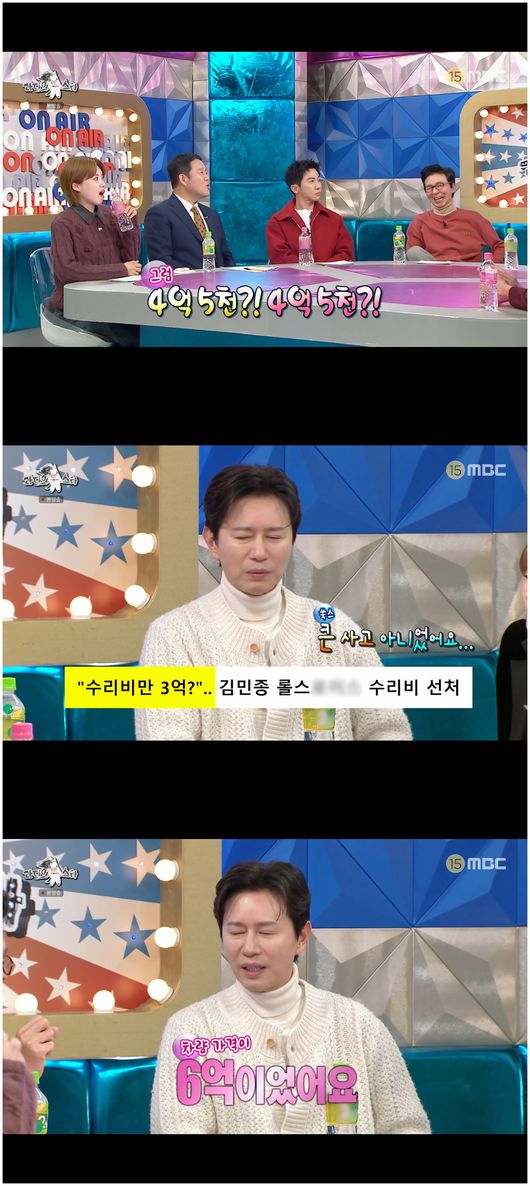 또한 얼마 전 화제가 된 김민종의 미담이 다시 또 알려졌다. 김구라는 “지난번에 롤스로이스 차량을 누가 긁었는데 스스로 사고 처리 했다는데”라면서 “수리비만 3억 원, 차량 가격이 4억 원은 되지 않냐”랴며 물었다. 김민종은 “그것보다 더 가격이 있다”라며 조심스럽게 6억 원이라고 말했다.