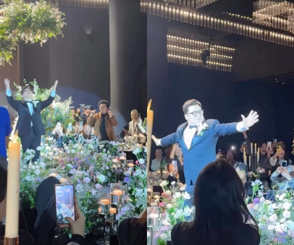 영상에서 윤정수는 결혼식 당시 입장을 하며 관객들을 향해 춤을 추고 있는 모습. 원진서는 이런 윤정수의 모습을 보여 귀엽다는 반응을 보였다.