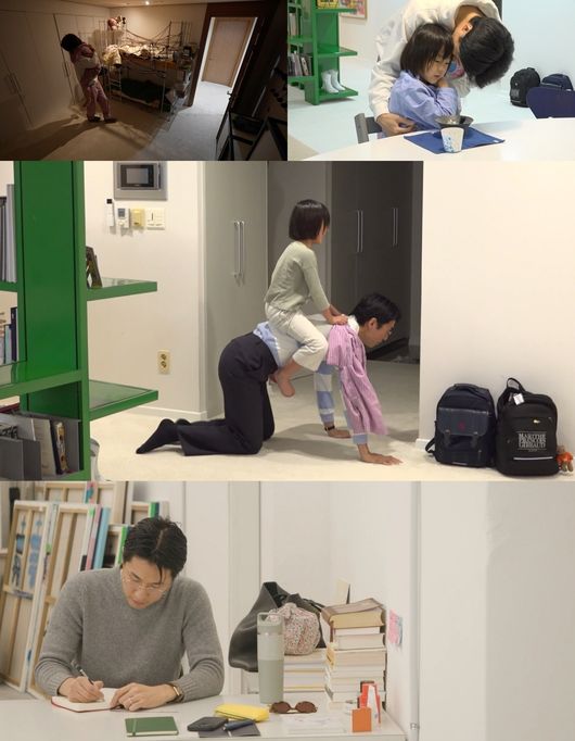 먼저 새벽 스케줄로 집을 비운 김나영을 대신해 마이큐가 홀로 두 아이의 등교 준비를 이끈다. 아이들을 깨우는 모닝 포옹부터 등교 룩 코디까지, 엄마의 빈자리가 느껴지지 않을 만큼 능숙한 ‘슈퍼대디’ 면모를 자랑한다고. 특히 첫째 아들 신우는 세상에서 가장 좋아하는 사람 1위로 주저 없이 아빠를 꼽아 훈훈함을 더한다. 이에 매니저는 마이큐를 “미술계의 션”이라며 그의 스윗함을 제보할 예정.