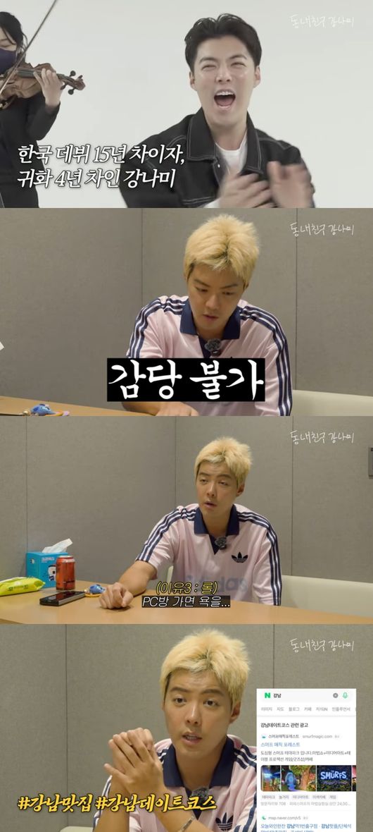 4일 저녁 유튜브 채널 '동네친구 강나미'를 통해 공개된 '한국 귀화 4년 차 강나미 드디어 개명 결심!? 철학관 3곳에서 새로운 이름 받기 이름으로 그것까지 보여요...?'라는 제목의 영상에는 강남이 개명을 시도하는 모습이 담겼다.