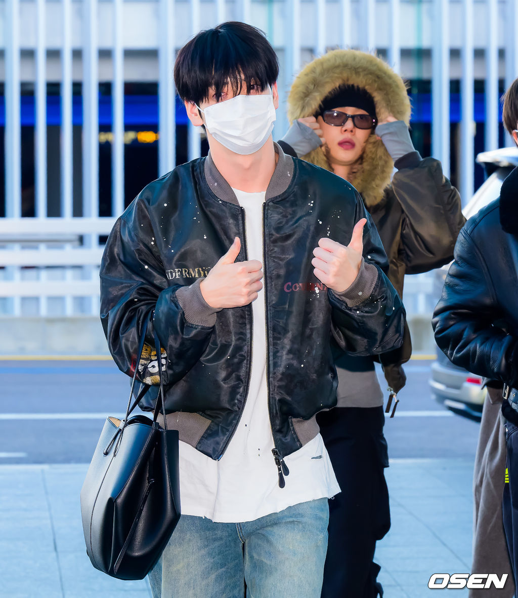 투모로우바이투게더 수빈이 출국장으로 향하며 팬들의 생일 축하에 감사 인사를 전하고 있다. 2025.12.05 /jpnews@osen.co.kr