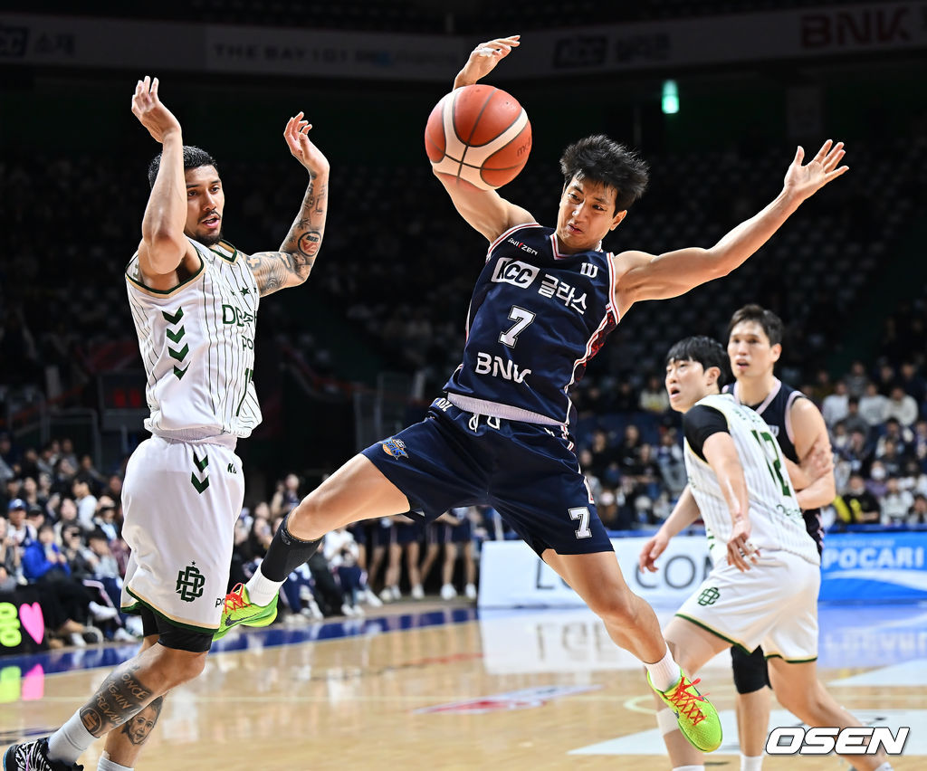 부산 KCC 허훈과 원주 DB 이선 알바노가 볼을 다투고 있다. 2025.12.06 / foto0307@osen.co.kr