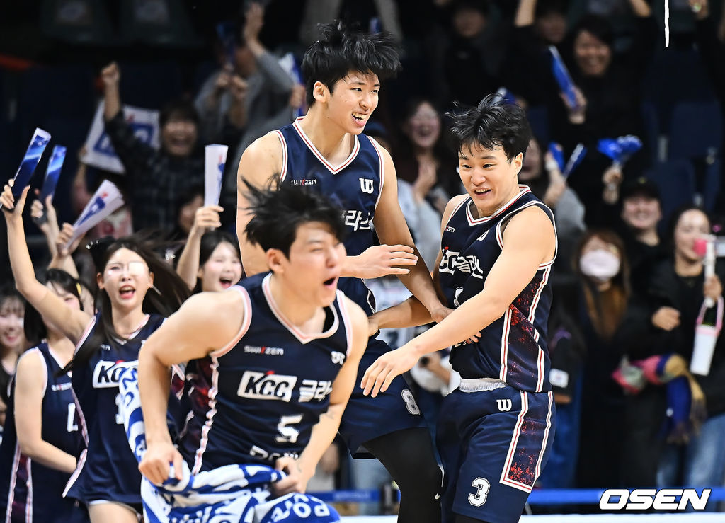 부산 KCC 윤기찬이 4쿼터 승리를 결정짓는 마지막 3점슛을 성공시키고 허웅과 포효하고 있다. 2025.12.06 / foto0307@osen.co.kr