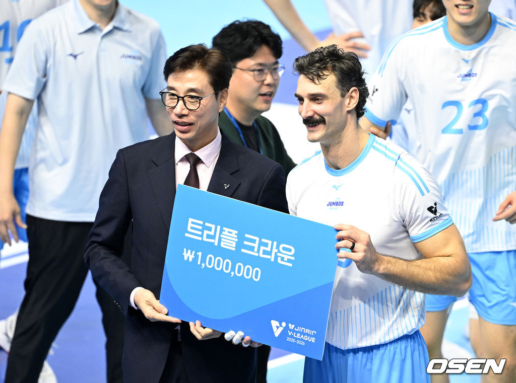 경기 종료 후 트리플크라운을 달성한 대한항공 러셀이 시상식을 가지고 있다. 2025.12.07 /sunday@osen.co.kr