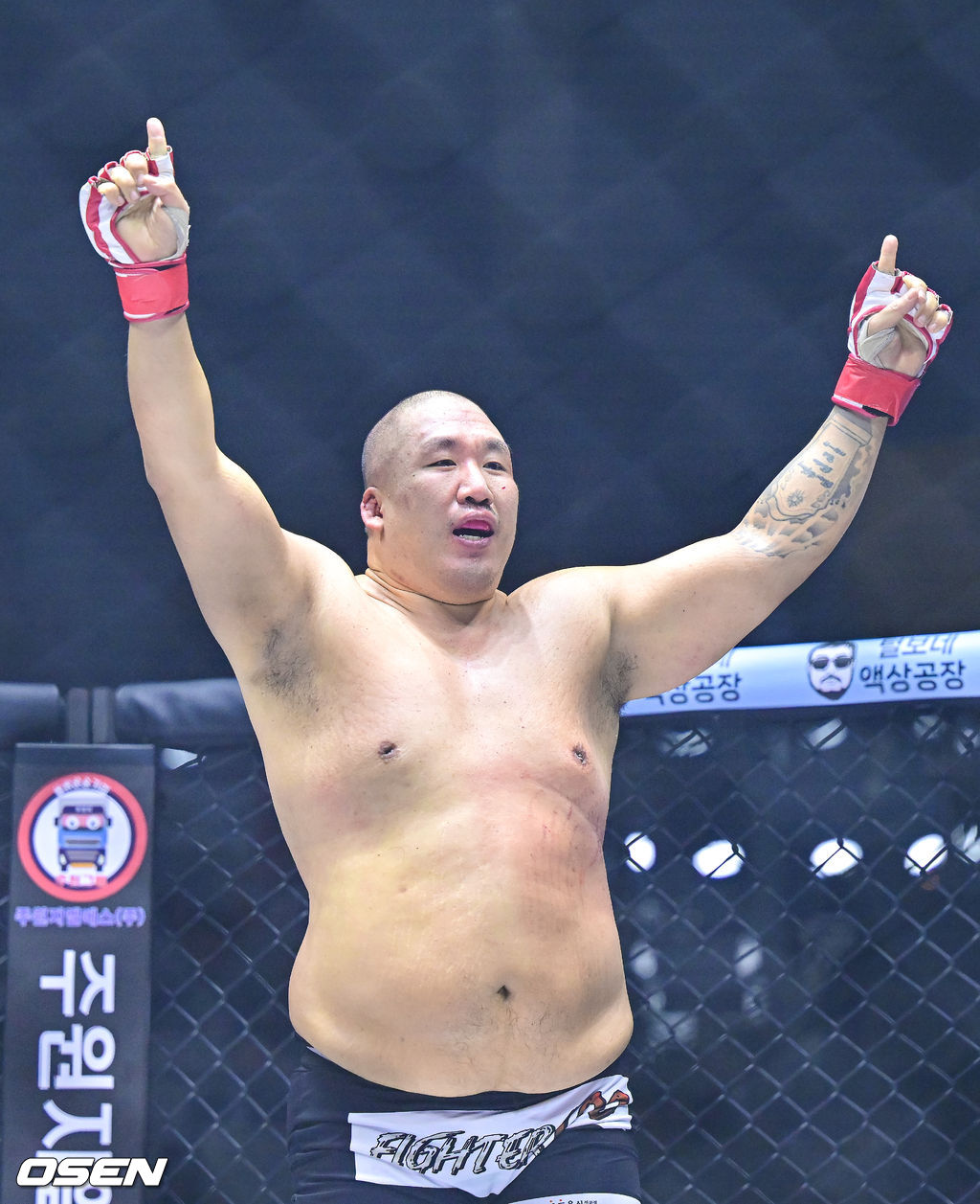 무제한급 매치 승리한 허재혁이 환호하고 있다. 2025.12.07 / soul1014@osen.co.kr