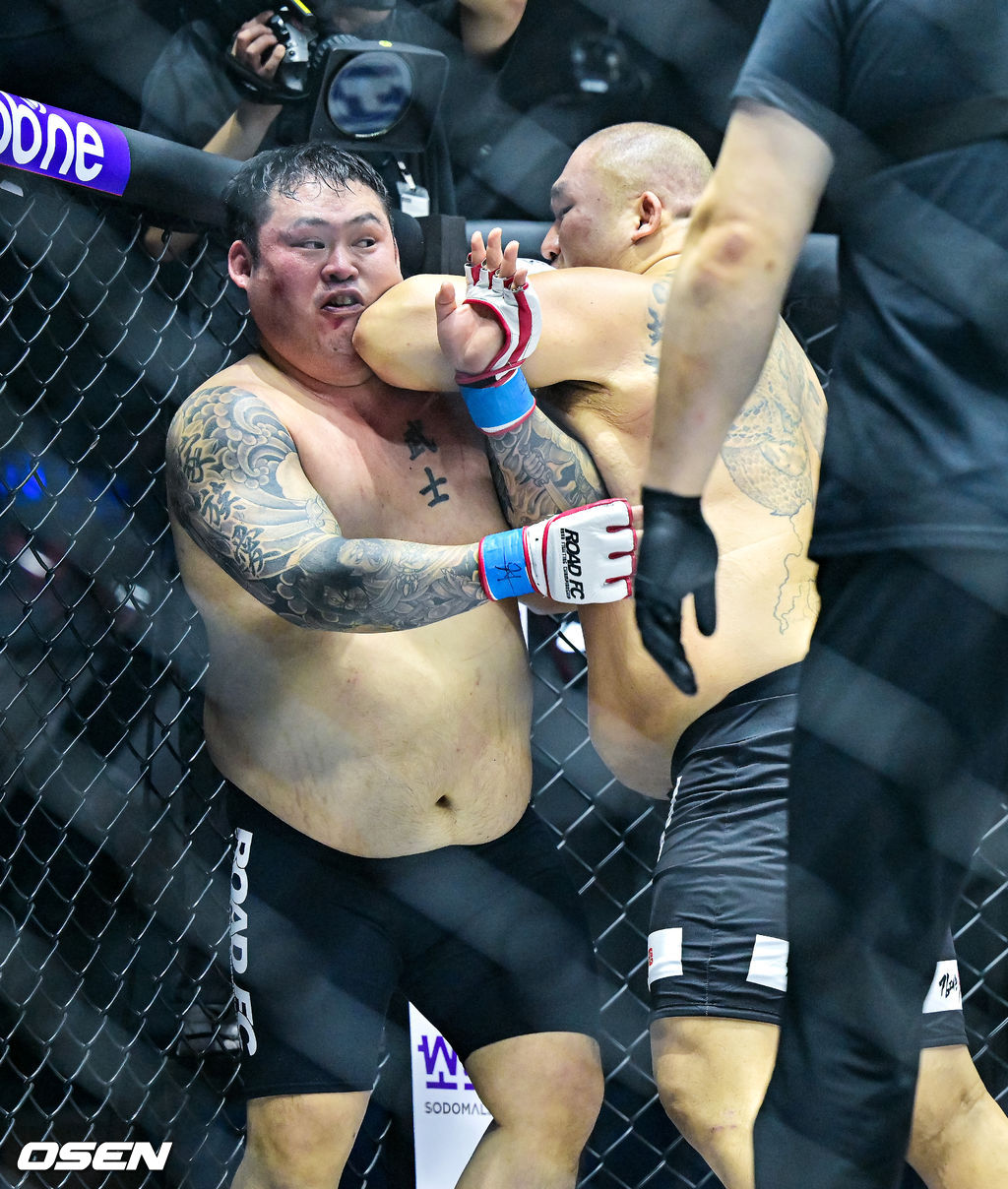 무제한급 매치 허재혁이 엘보우 공격을 하고 있다. 2025.12.07 / soul1014@osen.co.kr