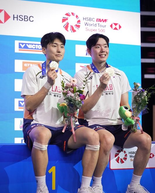 남자 복식으로만 좁혀서 보면 무려 37년 만의 기록. 지난달 BWF는 "김원호와 서승재는 구마모토 협립 체육관의 불빛 아래서 역사의 문턱을 용감하게 넘어섰다. 둘은 시즌 10번째 우승을 차지했다. 이는 트로피를 들어 올리는 것 이상의 성과다. 그들은 배드민턴 역사에 자신들의 이름을 새겼다"라고 강조했다.