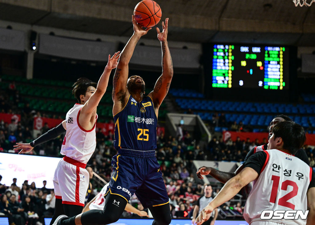 1쿼터 우츠노미야 브렉스 뉴빌 디제이가 바스켓카운트를 다내고 있다. 2025.12.17/cej@osen.co.kr