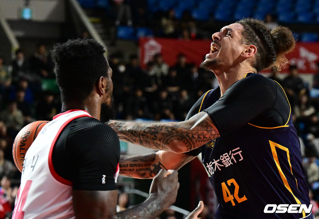 1쿼터 우츠노미야 브렉스 포투 아이작이 SK 워니 수비에 공을 놓치고 있다. 2025.12.17/cej@osen.co.kr