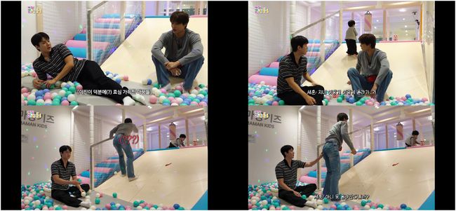 장난감을 갖고 놀던 이진이는 엑소 카이와 세훈을 보고 단박에 달려와 웃음을 그치지 않았으며 놀이방으로 떠나 신나게 놀기 시작했다.