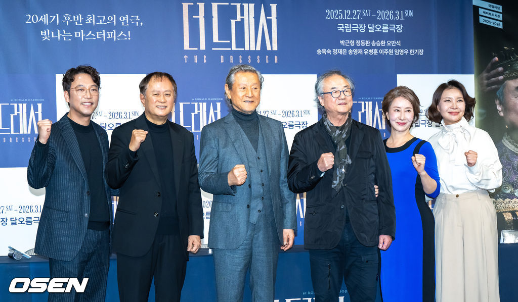 연극 '더 드레서'는 영화 '피아니스트'로 아카데미 각본상을 수상한 작가 '로널드 하우드'의 희곡을 원작으로, 작가가 셰익스피어 전문 극단에서 5년간 드레서로 일하면서 실제로 겪었던 경험을 모티브로 한 작품이다. 이날 행사에는 배우 박근형과 정동환, 송승환, 오만석, 송옥숙, 정재은, 장유정 연출이 참석했다.