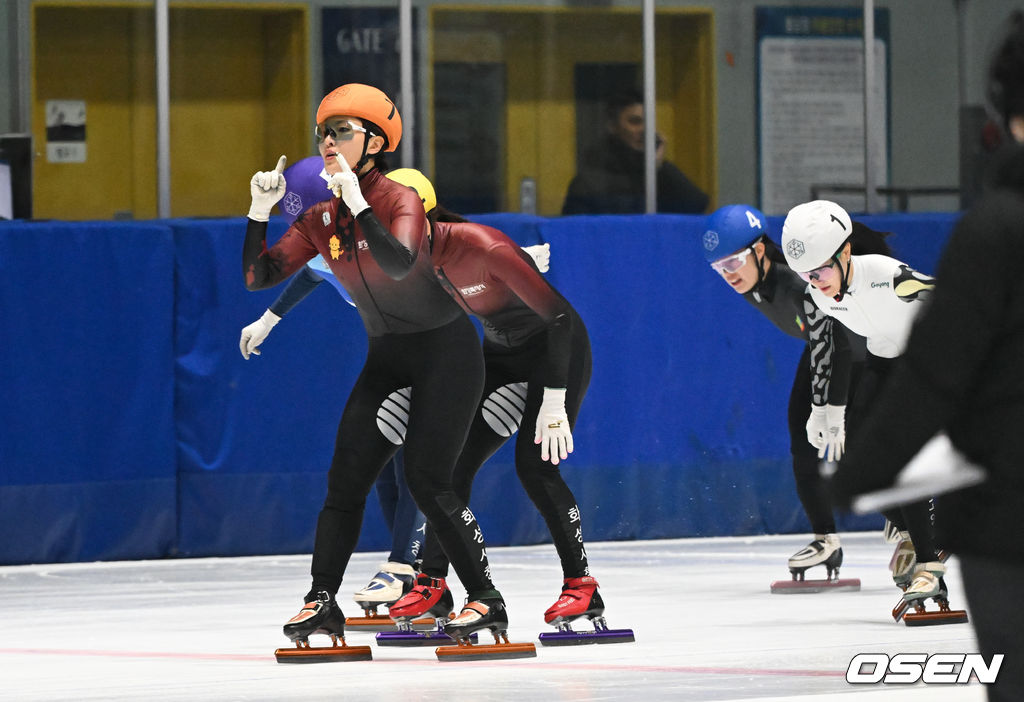 김혜빈(화성시청)이 여자일반부 1500m 결승전에서 결승선을 통과한 뒤 기뻐하고 있다. 2025.12.19 /cej@osen.co.kr