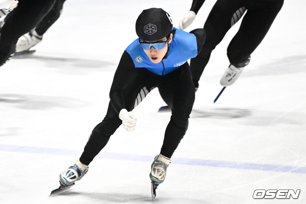 박건녕(한국체육대학교,검정)이 남자대학부 1500m 결승전에서 역주하고 있다. 2025.12.19 /cej@osen.co.kr