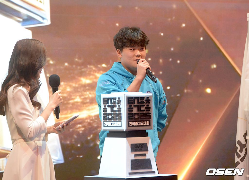 충북공업고등학교 박지호는 21일 오후 대전 유성 대전e스포츠경기장 드림 아레나에서 열린 ‘2025 전국중고교대회’ 전국결선 FC온라인 고등부 결승전 송민재와 경기에서 세트스코어 2-1(2-3, 3-2, 4-1)로 꺾고 우승을 차지했다.