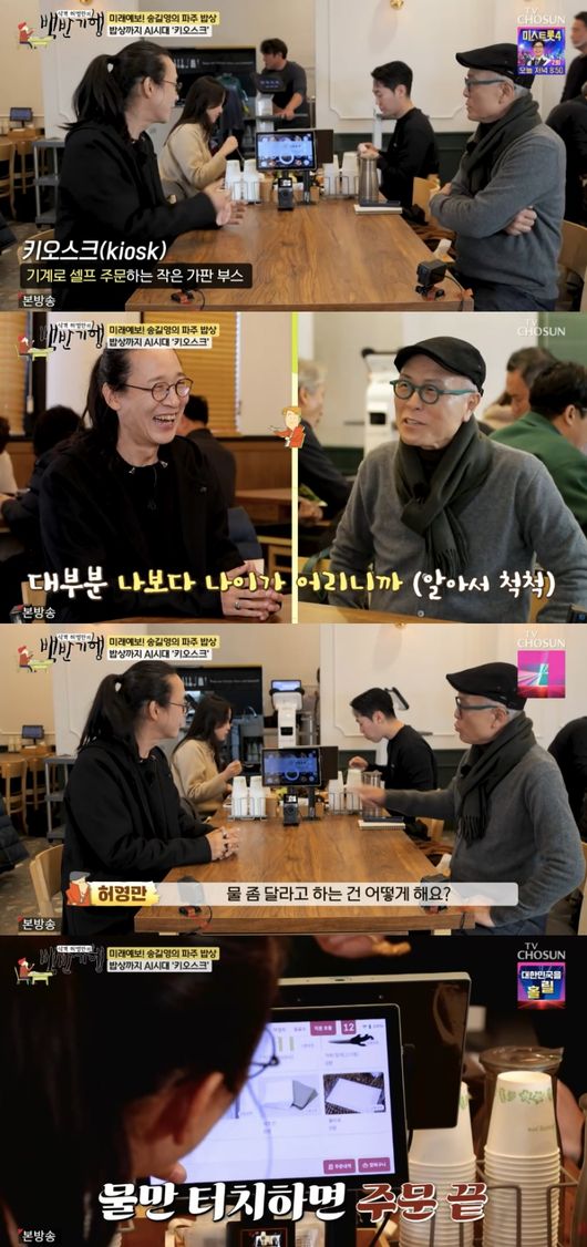 그런 가운데 키오스크를 마주한 송길영은 허영만에 “키오스크 쓰시냐”라고 물었다. 허영만은 “나는 가만히 있는다. 대부분 나이가 어리니까 대신 척척한다”라고 답했다.
