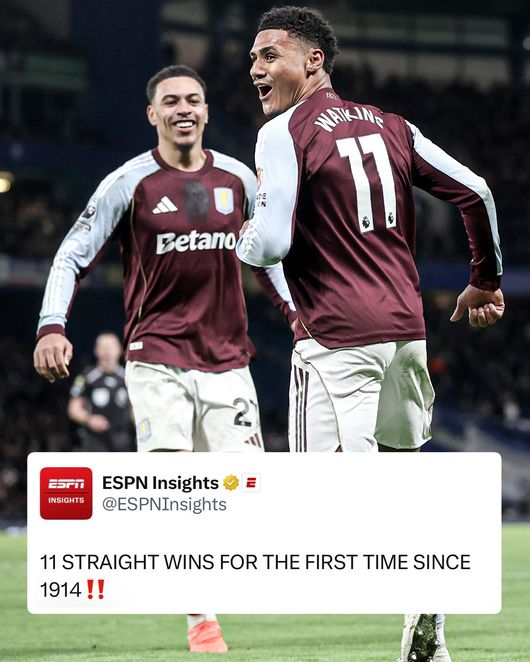 제1차 세계 대전 이후 처음이다. 아스톤 빌라가 구단 역사상 111년 만에 공식전 11연승을 완성했다.
