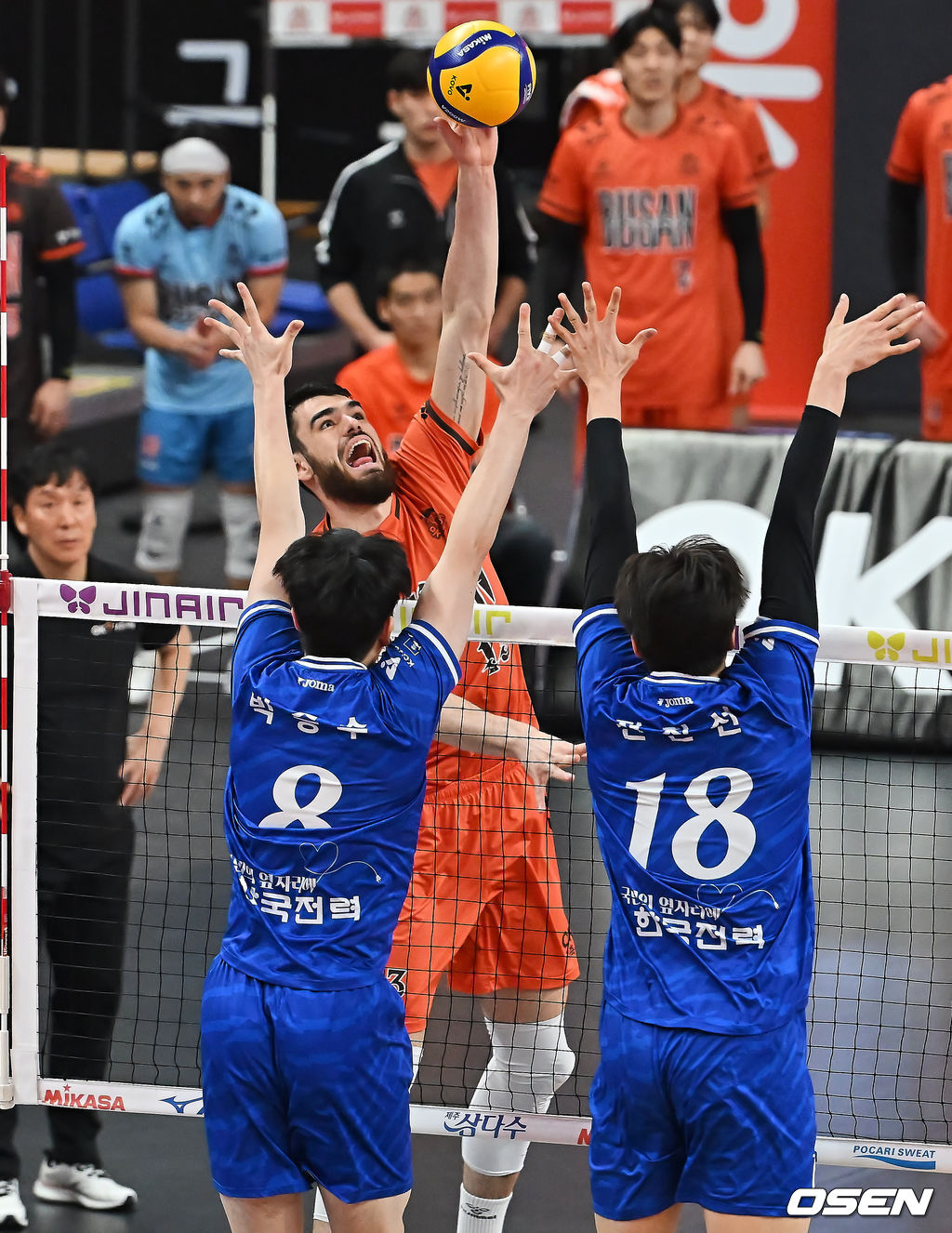 30일 부산 강서실내체육관에서 진에어 2025-2026 V리그 남자부 OK저축은행과 한국전력의 경기가 열렸다.