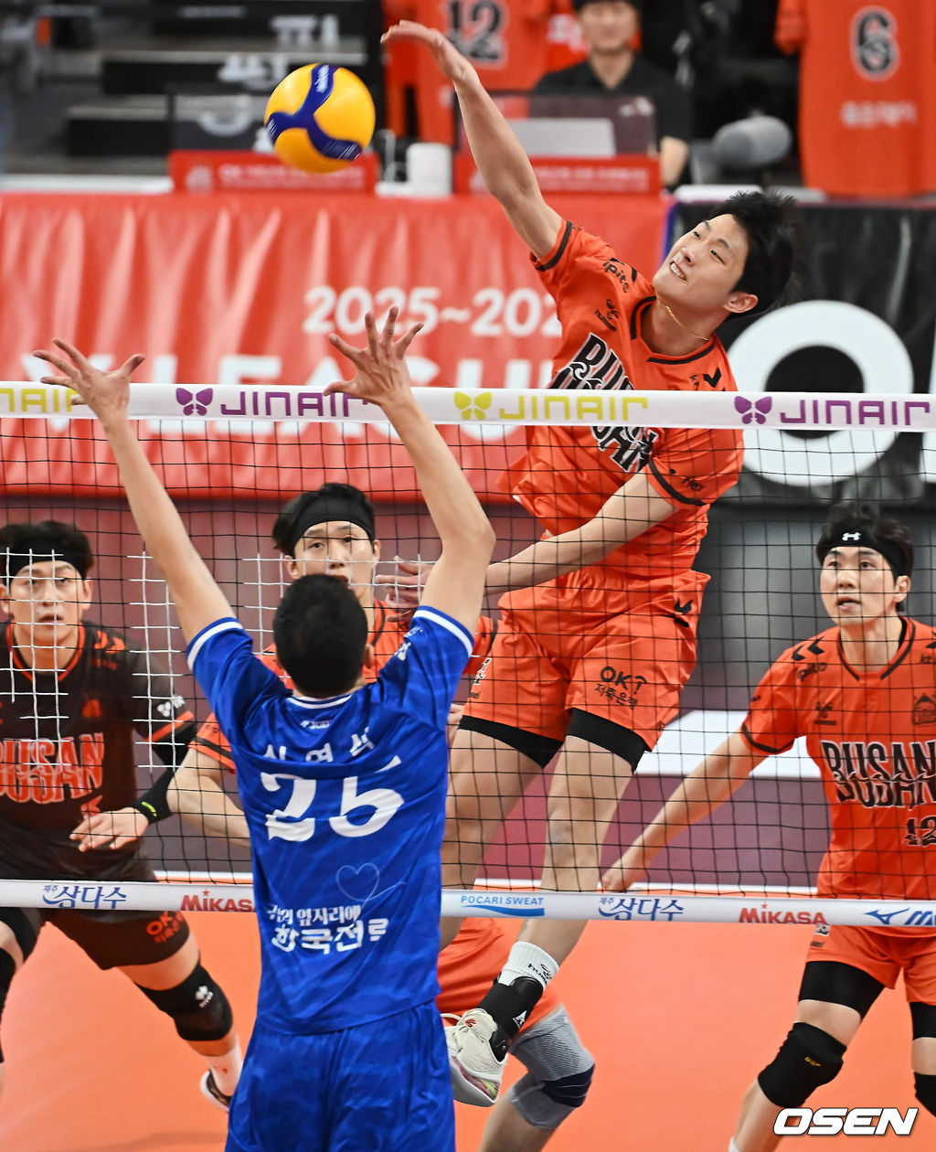 30일 부산 강서실내체육관에서 진에어 2025-2026 V리그 남자부 OK저축은행과 한국전력의 경기가 열렸다.