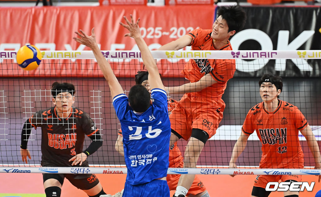 30일 부산 강서실내체육관에서 진에어 2025-2026 V리그 남자부 OK저축은행과 한국전력의 경기가 열렸다.