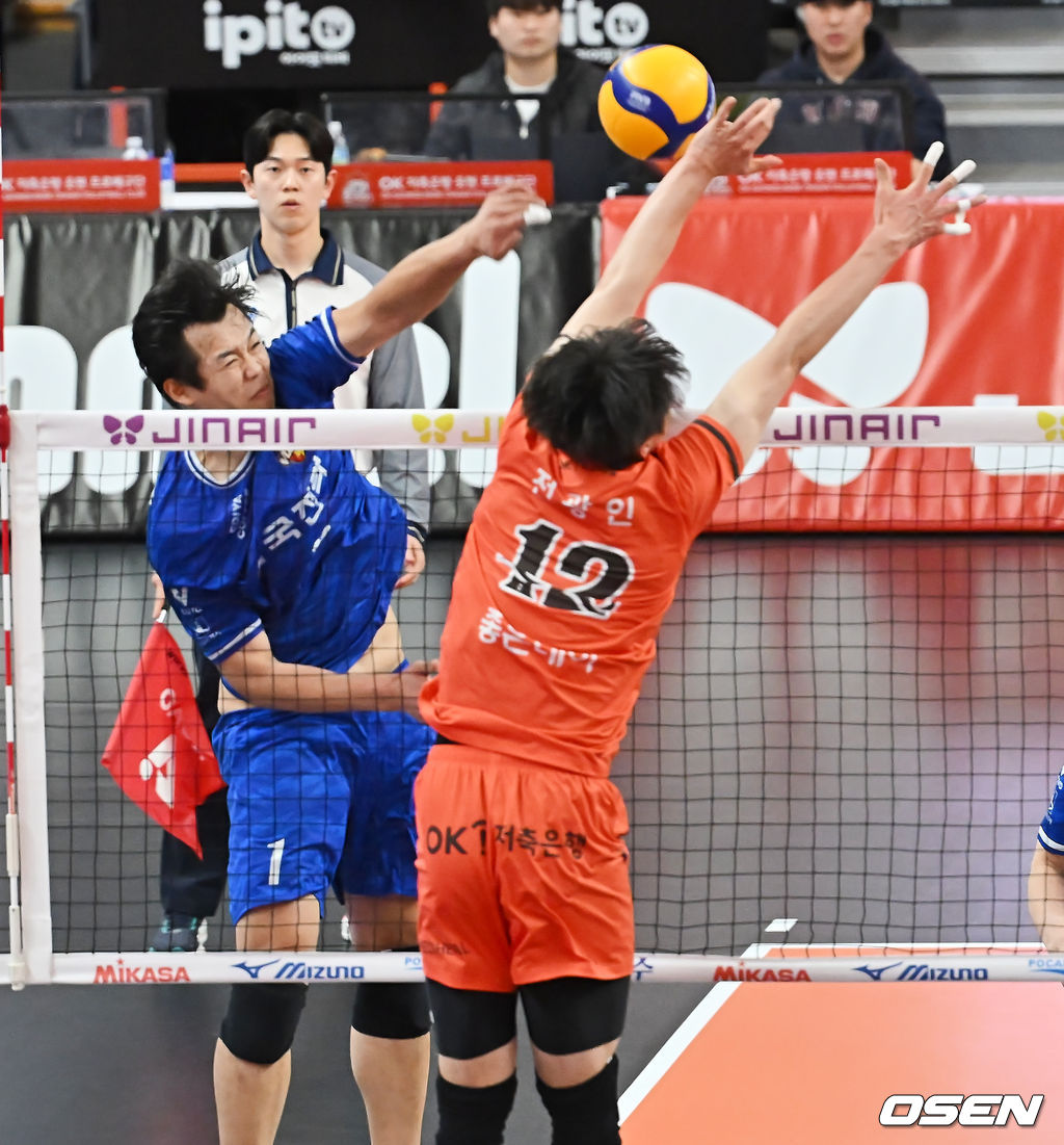 30일 부산 강서실내체육관에서 진에어 2025-2026 V리그 남자부 OK저축은행과 한국전력의 경기가 열렸다.