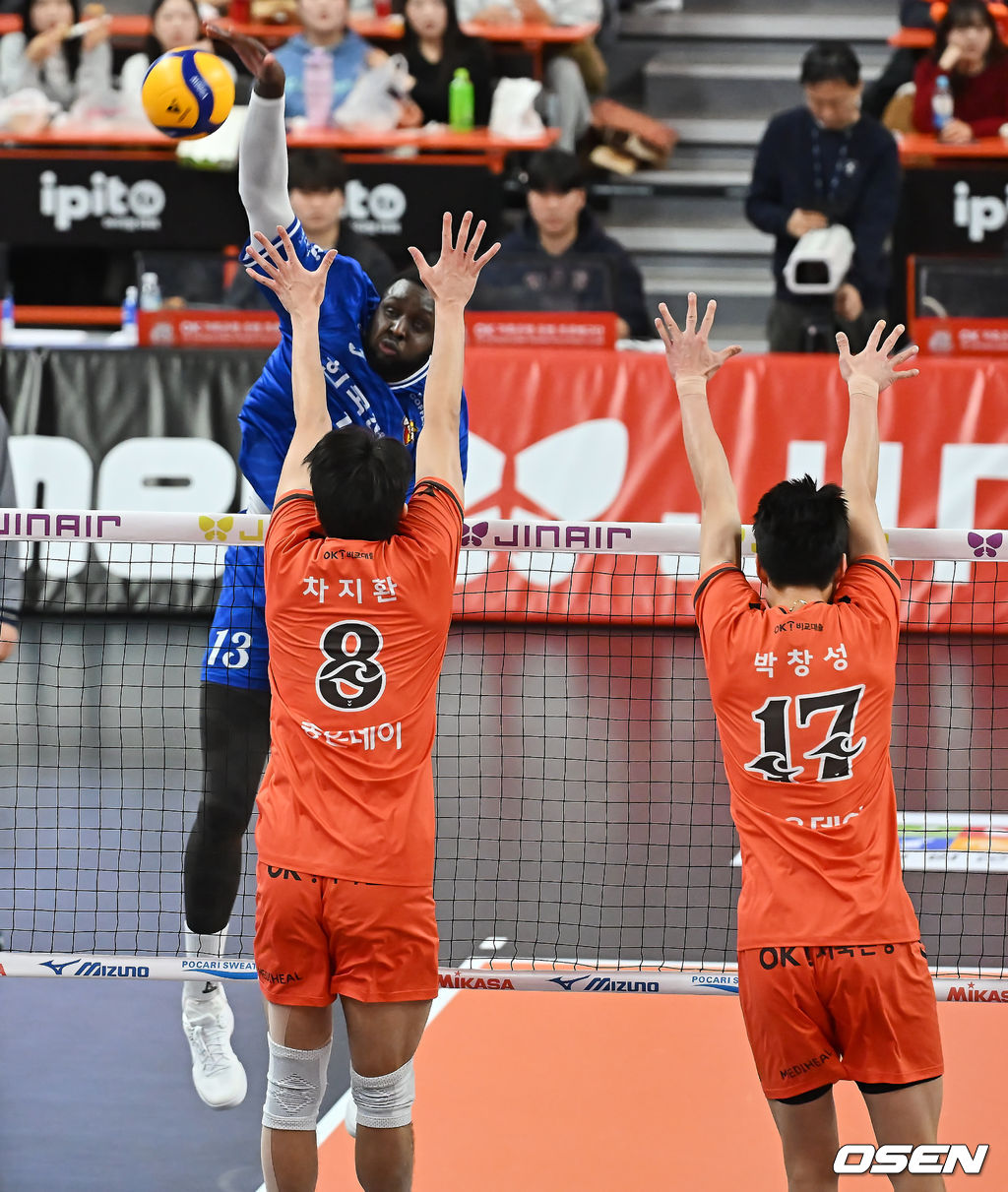 30일 부산 강서실내체육관에서 진에어 2025-2026 V리그 남자부 OK저축은행과 한국전력의 경기가 열렸다.