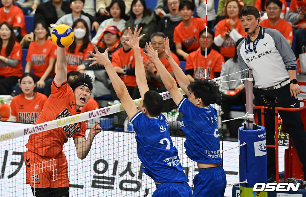30일 부산 강서실내체육관에서 진에어 2025-2026 V리그 남자부 OK저축은행과 한국전력의 경기가 열렸다.