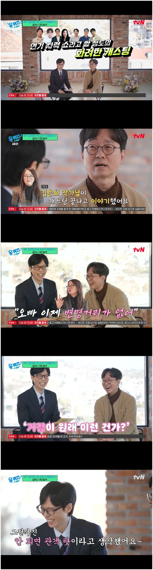 장항준은 “개봉 전에 회사 사람들과 이야기를 했다. 이미지가 너무 가벼워서 영화 홍보에 도움이 될 거 같지 않다고 했더니 모두 공감했다”라면서 “오늘 촬영장에 영화 관계자 세 명이나 왔다. 내가 말실수를 할까 봐. 그런데 유퀴즈는 다르잖아? 제 개인 이미지에도 좋은 프로그램이라고 생각한다”라며 이미지 관리에 힘쓰겠다고 말했다.
