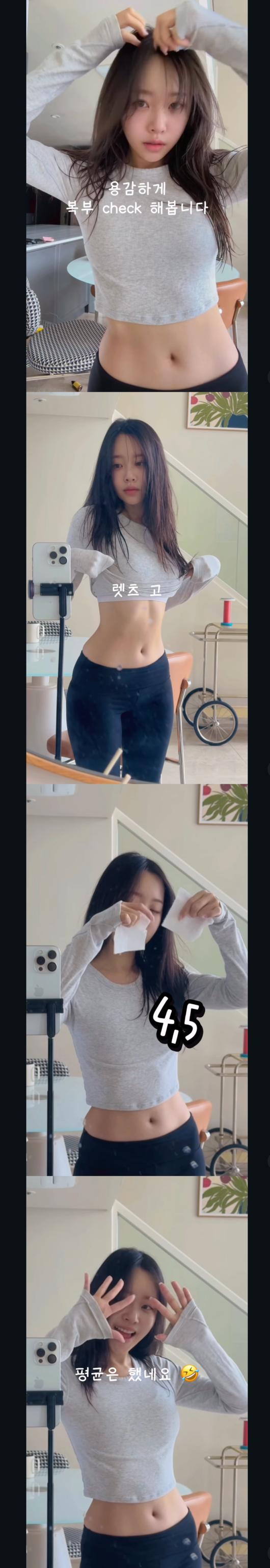 이솔이는 "평균은 했네요"라는 겸손한 멘트를 덧붙였지만, 실제로는 현직 걸그룹 멤버들의 평균 수치보다도 적은 칸 수로 허리를 완전히 감싸며 완벽한 S라인 체형을 증명했다.