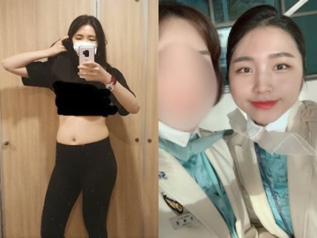 그는 "제가 원래부터 이렇게 날씬했냐는 절대 아니다. 진짜 통뚱했을때가 있었다. 그것도 막 어렸을때도 아니다. 승무원때 170에 70kg가 넘었다. 제가 이렇게 말하면 다들 안 믿는다. 그래서 내가 증거사진, 내가 이랬었다 하고 보여주면 다들 놀란다. 여러분들도 제가 통통했었다 하면 안믿으실것 같은데 여러분들께도 증거사진을 보여드리겠다"며 가장 살이 쪘을 승무원 시절 자신의 사진을 공개해 놀라움을 안겼다.