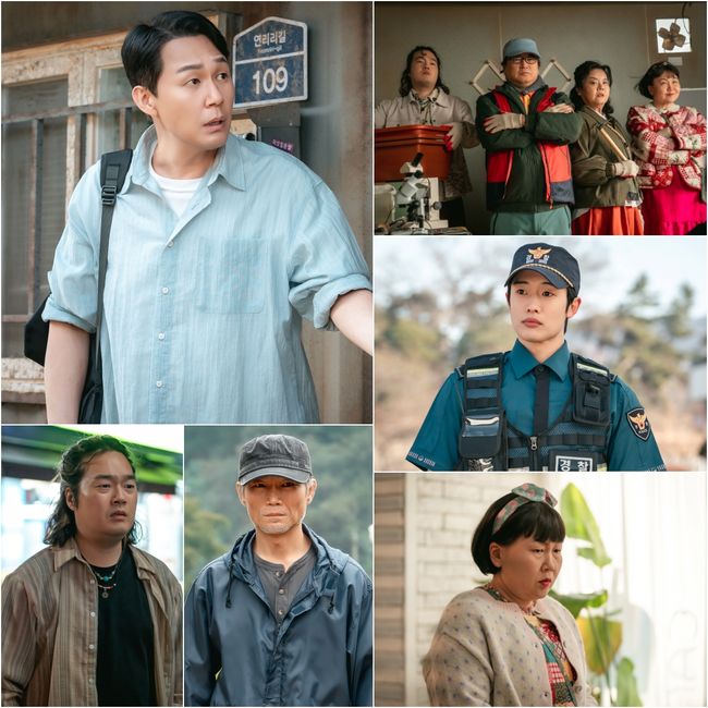 또 다른 스틸에는 이장 부부 임주형과 남혜선(남권아 분)을 필두로, 연리리 내 기막힌 정보력을 자랑하는 이선자 역의 이선희, 영앤 리치 철물점 주인 왕동식 역의 박석원 등 연리리 ‘고인물’ 군단의 위엄이 고스란히 담겼다. 미스터리한 관리인 노현갑 역의 정선철까지, 예사롭지 않은 포스를 뽐내는 이들이 뉴페이스 성태훈 가족에게 적대감을 드러내는 이유는 무엇일지, 그 관계성에 시선이 집중된다.