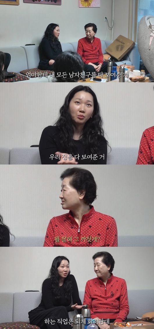 장윤주는 “내가 잘한 것 중 하나가 엄마한테 내 모든 남자친구들을 보여준 거, 그리고 우리 집에 와서 우리 집을 다 보여준 거. 난 그걸 되게 잘했다고 생각한다”라고 밝혔다.