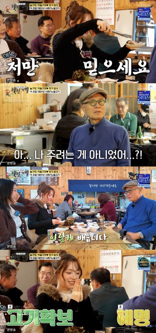 다시 자신의 접시에 불고기를 담은 문샤넬을 본 허영만은 “자기 거 담으니까 고기 많이 담네”라고 놀렸고, 문샤넬은 “일부러 그러진 않았다”라고 해 웃음을 자아냈다.