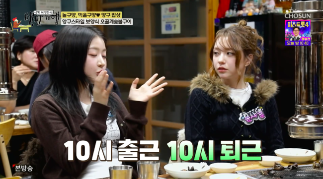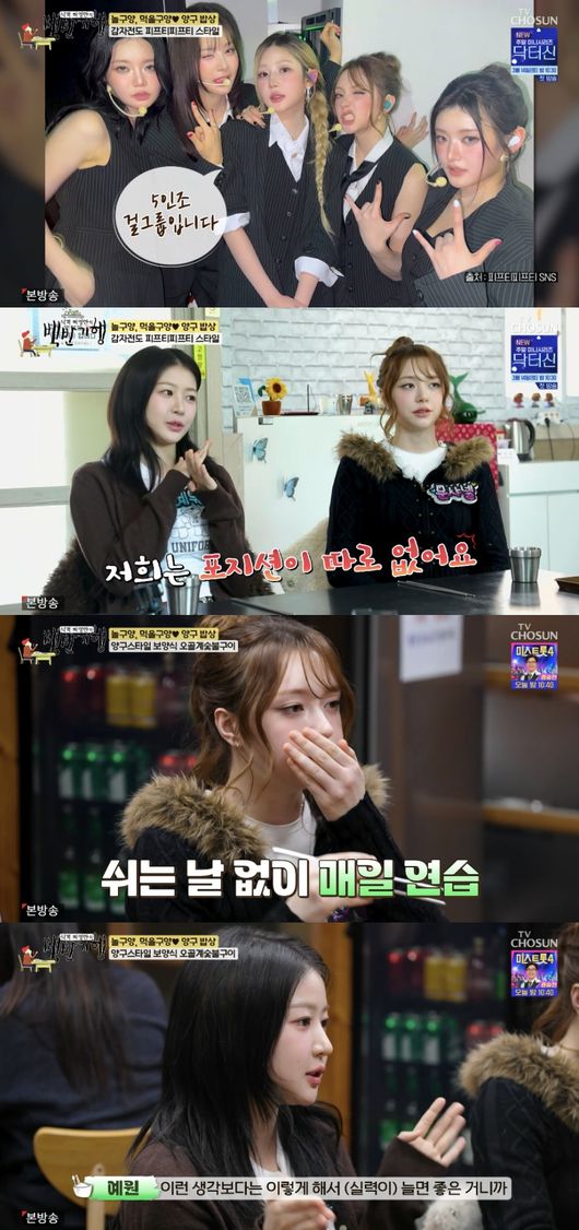 한편, 허영만은 “하루에 연습하는 시간은 얼마나 되냐”라고 질문했다. 문샤넬과 예원은 “오전 10시에 출근해서 밤 10시에 퇴근한다”라며 하루에 무려 12시간씩 노래와 안무 연습을 한다고 밝혔다.