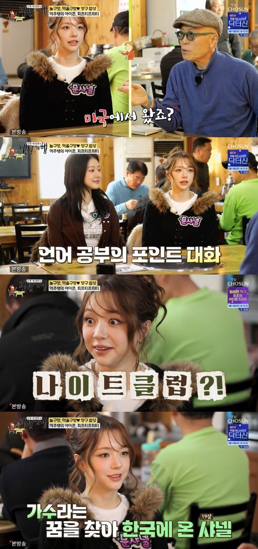 그러자 허영만은 “혹시 나이트클럽 이런데?”라고 농담을 건넸다. 깜짝 놀란 문샤넬은 “좋은 것 같다. 시끄러우니까 크게 말하고”라고 받아쳐 웃음을 안겼다.
